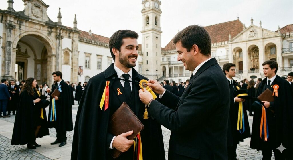 A história dos finalistas na Universidade de Coimbra (UC) é profundamente marcada pela tradição da Queima das Fitas, um evento que celebra o término do percurso académico com o uso de insígnias específicas, como a capa, a cartola e a bengala. Esta celebração, que mistura alegria pelo fim das aulas com a preparação para o futuro, tem o seu ponto alto no cortejo académico.